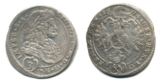 3 Krejcar 1694 CK, K.Hora-Krahe, Nech.313, MKČ.1457, Her.1509
