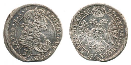 3 Krejcar 1699, K.Hora-Krahe, Nech.319, MKČ.1460, Her.1515_č.ned.