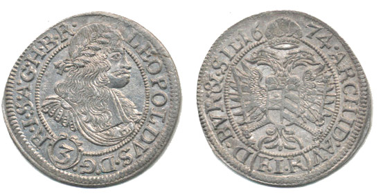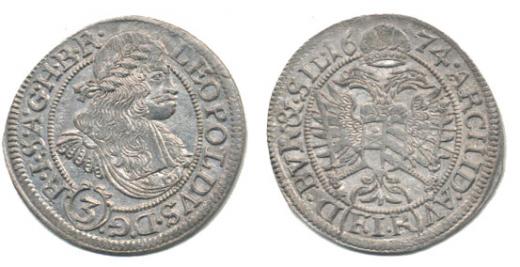 3 Krejcar 1674 FIK, Opolí-Kirschenhoffer, Nech.813, Her.1553_R! tém.