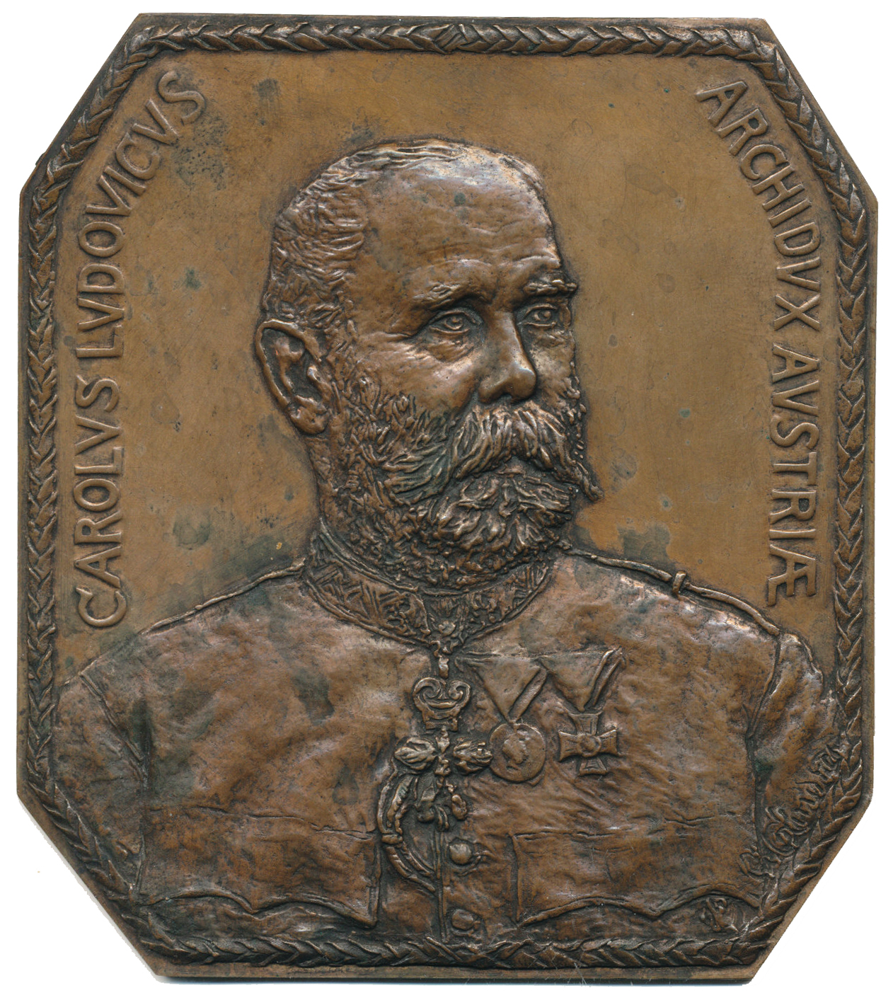 Portrét v uniformě čelně mírně zprava, b.l. Sign., Bronz.plaketa 102x115 mm, Haus.-, Wurz.-_jednostr. R!