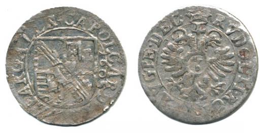 3 Krejcar 1605 s tit.Rudolfa II., letopočet po stranách štítu jako Sa.1962/962_č.ned. RR!