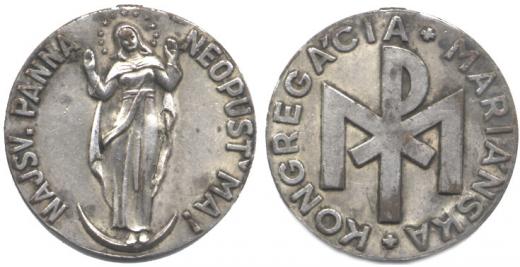 Slovensko - mariánská kongergace b.l. Panna Maria Assumpta stojí na půlměsíci, slovenský opis / kombinovaný monogram Ježíše Krista a Panny Marie, slovenský opis, Postř.bronz 30 mm_odstr.ouško