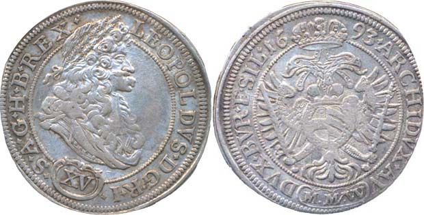XV Krejcar 1693, Vratislav-Wackerl, Nech.687, Höll.93.1.3a