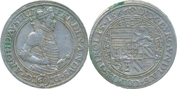 Tolar (60 Krejcar) 1566, Hall-Krump, jako M-A.54(tab.9/14), Mor.440