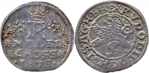 Malý groš 1578, Č.Budějovice-Gebhart, HN.2a (opis 7c) J.3a _dr.okr. R!