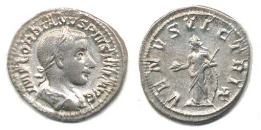 AR Denár, Rv:"VENVS.VICTRIX.", stoj.Venuše, S.2377, RIC.131 - mincovna Řím - ražba z léta roku 241, emise na svatbu s Tranquillinou_R!
