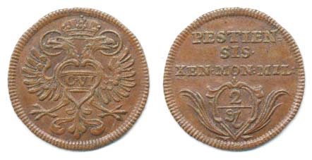 2 Pfennig b.l., Pešť - Invalidovna, Cu, ražba z r.1730, Her.1222_R!