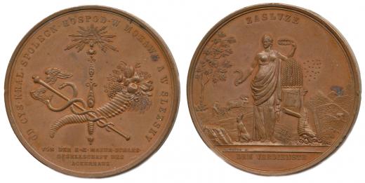 Hospodářská společnost pro Moravu a Slezsko, b.l.#Br Stojící Ceres se symboly úrody, nápis / symboly moci a bohatství, písmo, Sign., Bronz 62 mm, MZČ.119/2, Ho.6095