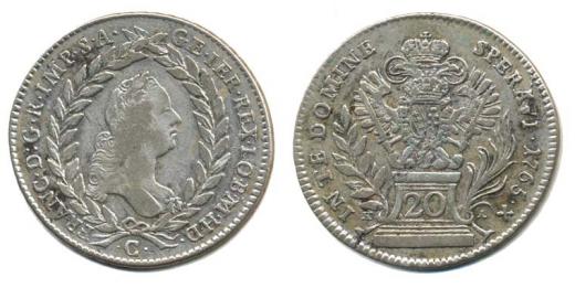 20 Krejcar 1765 C/H-A, Tyroly-Hall, N.8 - posmtný z r.1768_R!