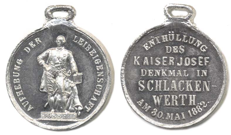 Ostrov (Schlackenwerth) - na zrušení nevolnictví a odhalení pomníku Stojící císař čelně, opis / 7řádk.nápis, Nesign., Sn 30 mm, 11,33 g _orig.raž.ouško