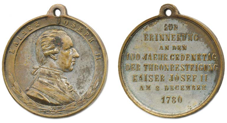 Nesign. - medaile k 100.výročí nástupu na trůn 29.11.1780 - 1880 Poprsí zprava, opis / 8řádk.nápis, Postř.bronz 30 mm, 9,06 g _orig.raž.ouško