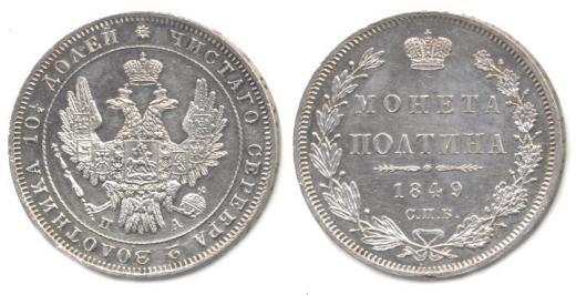 Poltina 1849 SPB-PA, Sankt Petěrburg, Cr.167.1, Uzd.1636 skup.XVIII-B/ b
