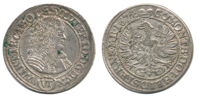 VI Krejcar 1674 SP, SJ.205/57, Fr.2295, Kop.6215 - velký portrét a písmo_tém.