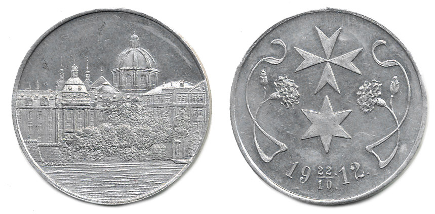 Šmakal - pamětní medaile, 22.10.1912 Pohled na budovy kláštera / emblém řádu, květinová výzdoba, datum, Sign., Nepunc., Al 33 mm, 13.23 g, Gr.142, jako Přib.382b