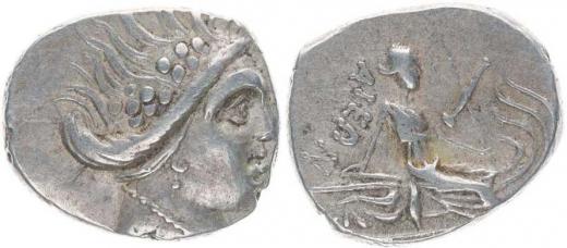 AR tetrobol, Nymfa Histiaia zprava / nymfa Histiaia sedící na přídi lodi, nápis, monogram, SG.2496
