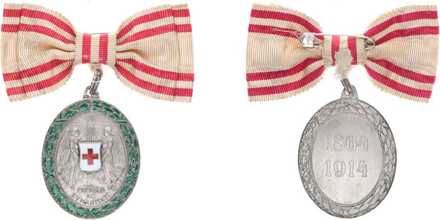 Stříbrná zásl.medaile za Červený kříž, VM.14-B-5, válečná skupina_orig. dámská stuha