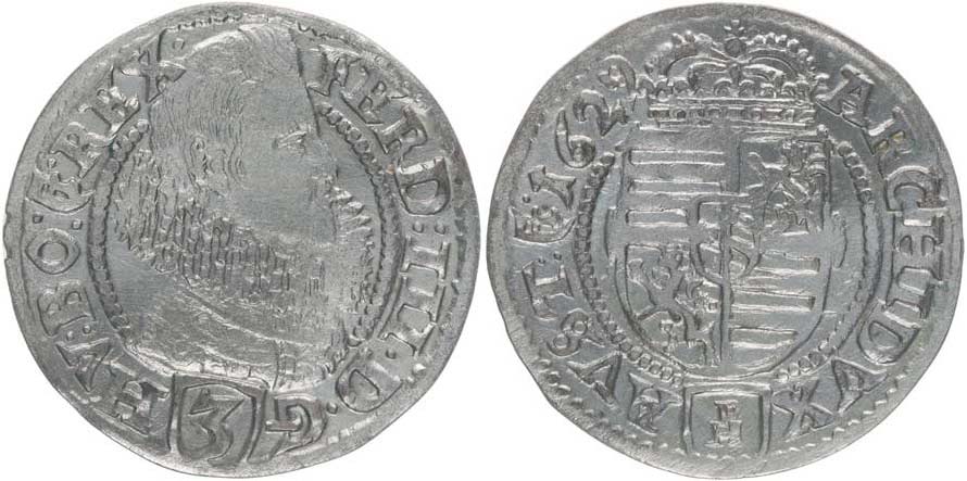3 Krejcar 1629 PH, Petr Hema, Nech.113, MKČ.1335a