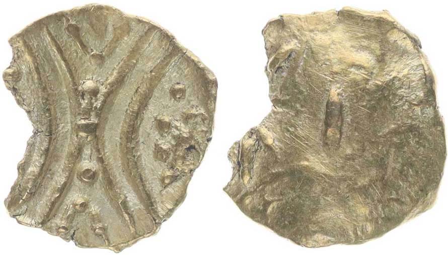 1/8 Stateru, Au, typ Magdalensberg, stylizovaný kříž 11,5 mm, 0,66 g, Kost.248pod, Pink.562pod._č.vylomený