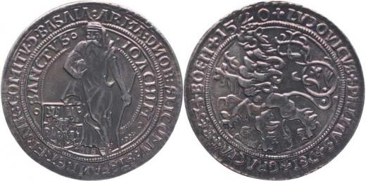 Tolar 1520 s titulem Ludvíka I._novoražba 1994 minc.Jablonec n.N. 3x Punc. 999 u C (u nohy), Ag 42 mm, 25,56 g