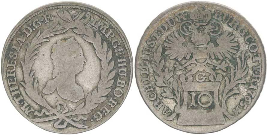 10 Krejcar 1765 G, Günzburg, N.33, Her.1180, Eyp.117