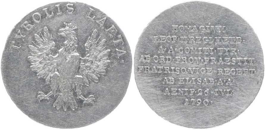 Menší peníz na holdování stavů v Tyrolsku, 1790 Tyrolská orlice, opis / 8řádk.nápis, Ag 20 mm, 2.2 g Mo.2194, Nov.XVI/C-2a, Ho.3241