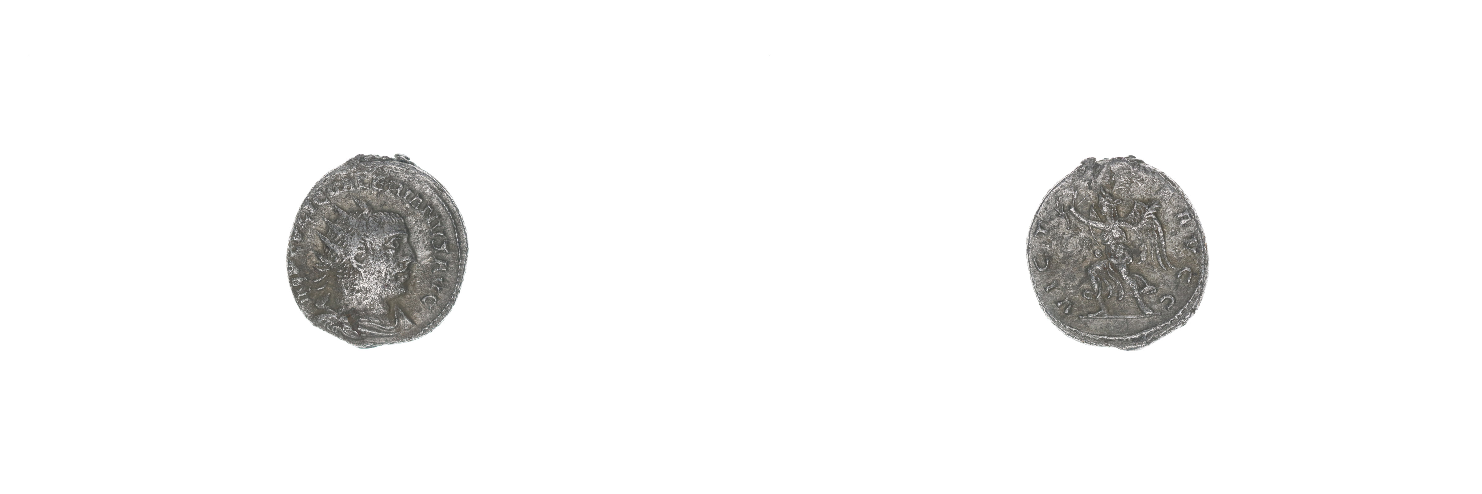 AR Antoninianus, Rv:"VICTORIA.AVGG.", stojící Victoria zleva, S.2801, RIC.127, C.230, K.88.68