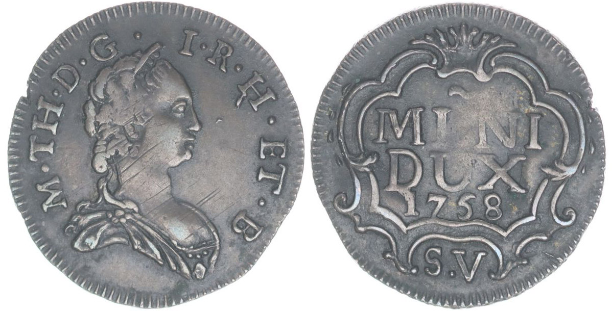 V Soldi 1758, Milán, Nov.192, Her.1793, Fr.1893, Eyp.- široký střížek 21 mm_dr.ned. RR!