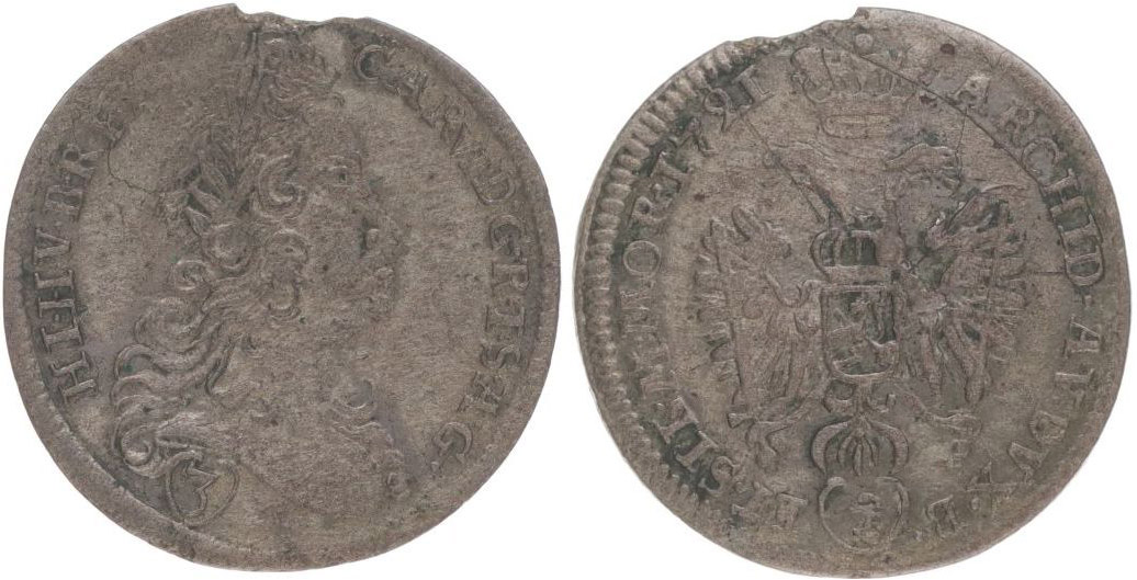 3 Krejcar 1721, Praha-Scharff, Ja.11c, MKČ.1836, Don.2720 _vyl.okr.