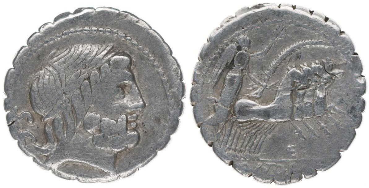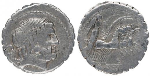 AR denár - serratus, hlava Jupitera zprava, nápis "S.C." / Victoria v quadrize, nápis "Q.ANTO.BALB. PR.", Crawford.364/1a, S.237, Al.1242, Ves.1178