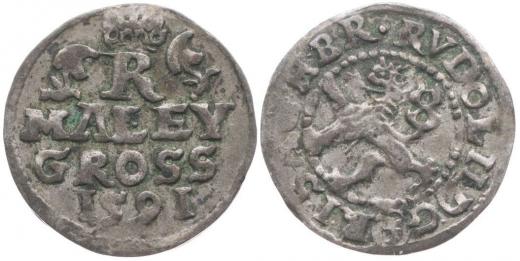 Malý groš 1591, K.Hora-Šatný, HN.1b (opis 7a), Ja.6b