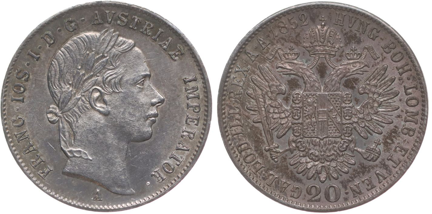 20 Krejcar 1852 A - hlava zprava
