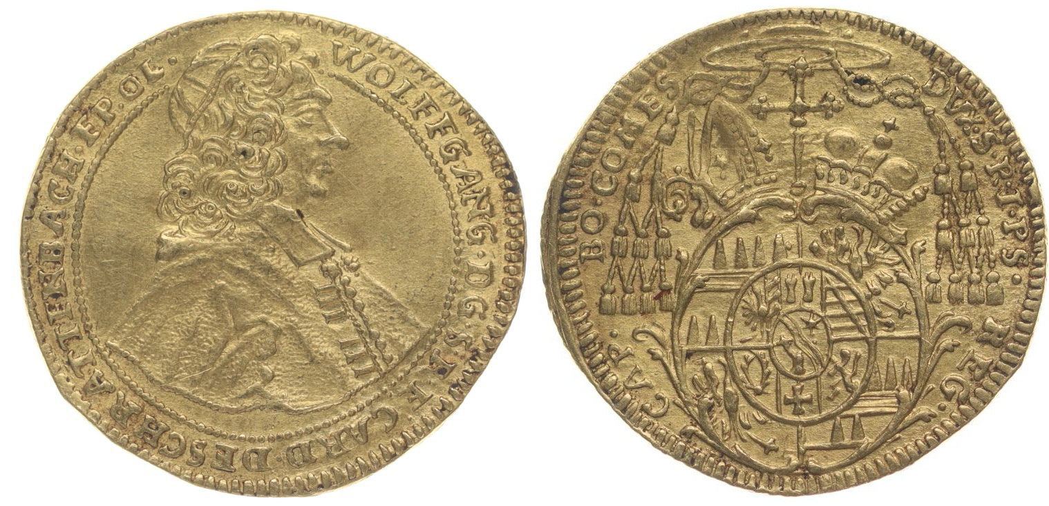 Dukát b.l., Poprsí zprava, opis / korunovaný znak pod kardinálským kloboukem, S-V.777-B/B_dr.zvln. R!