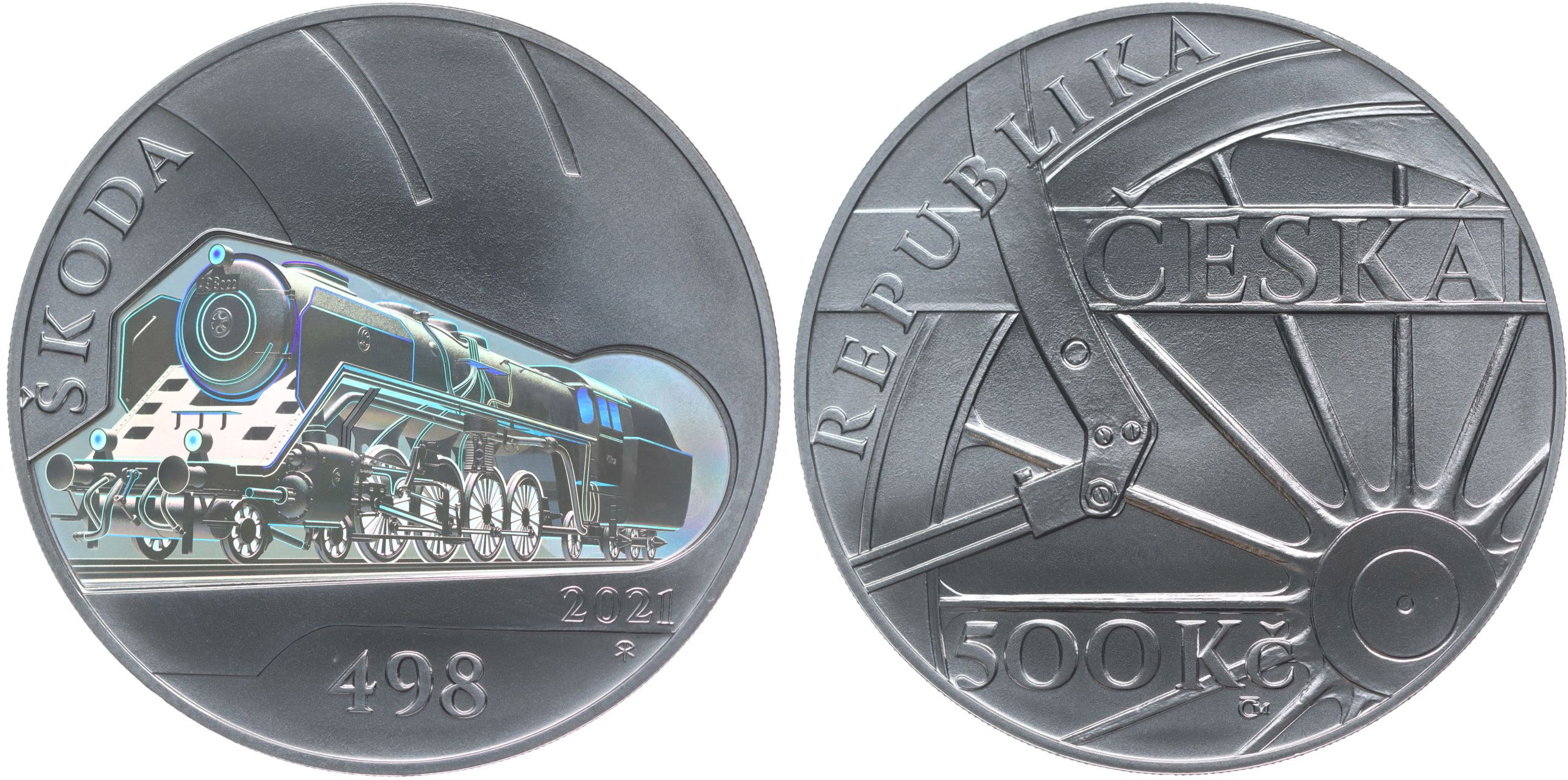 500 Kč 2021 - 500 Kč 2021 - Parní lokomotiva Škoda 498 _orig.etue + kapsle + certifikát