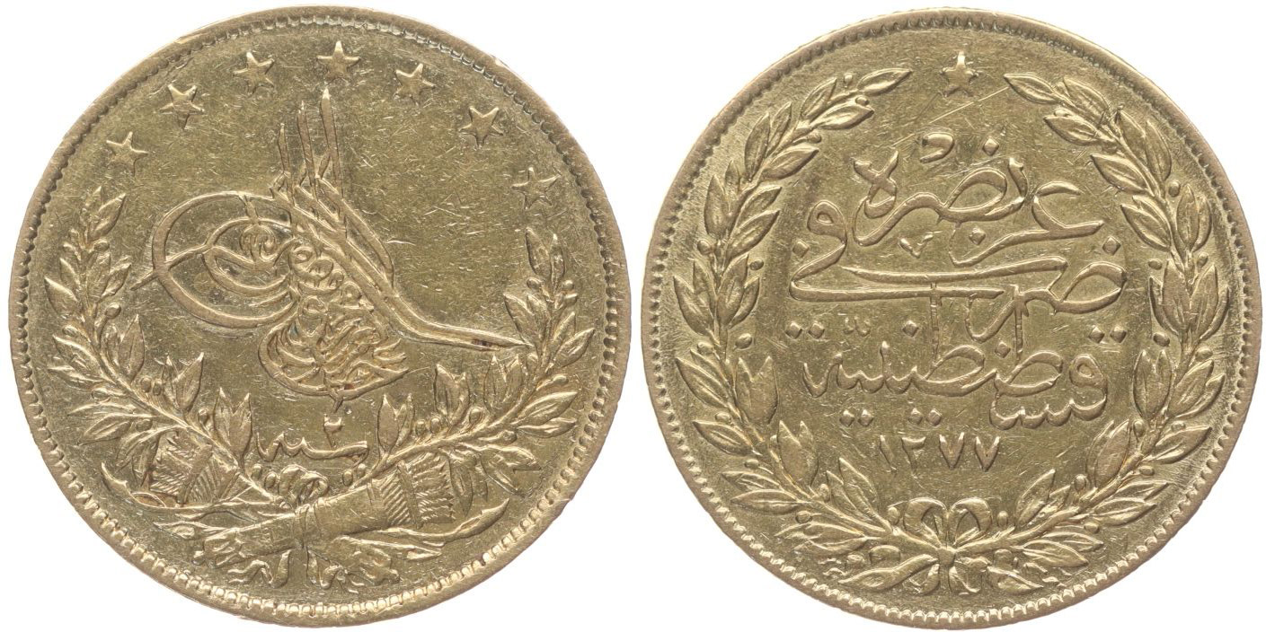 100 Piastr - 2.rok vlády (= 1862), KM.696, 7,18 g_vl.rysky v av.