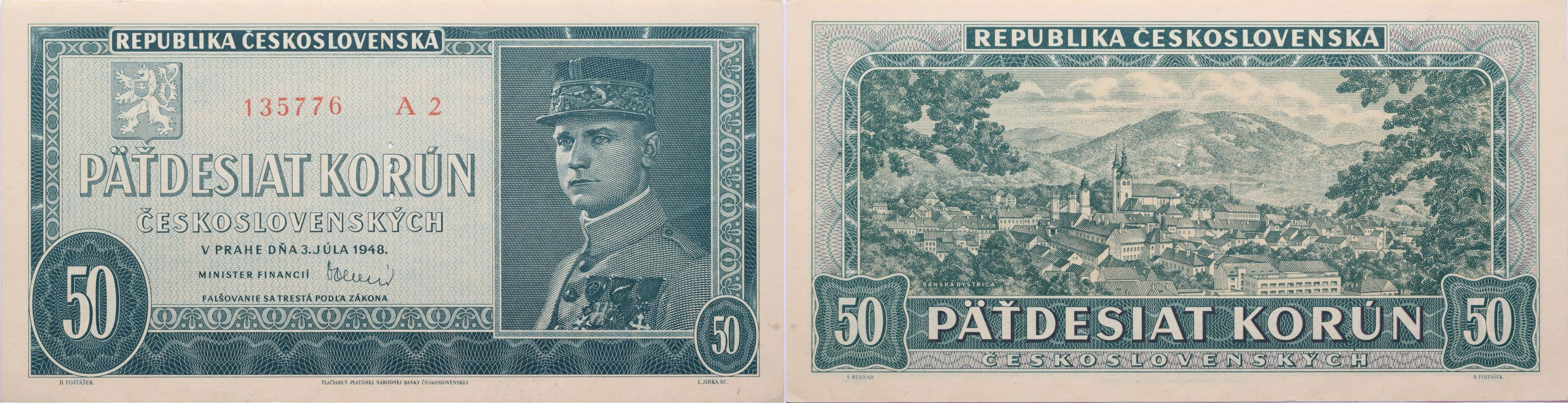 50 Kčs 1948, série A2, B.82a, Hejz.8a1S1_"perf.3md" nad sebou