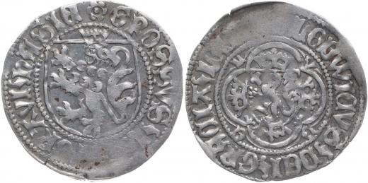 Groš štítový, Freiberg (ražba z let 1409-12), Kr.669/3_č.ned.