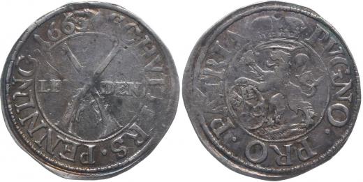 Střelecký pfennig (Schützenpfennig) 1665, lev zleva, opis / dvě zkřížené pušky, nápis, opis, jako Wi.11968, Ag 30 mm_č.ned. RR!