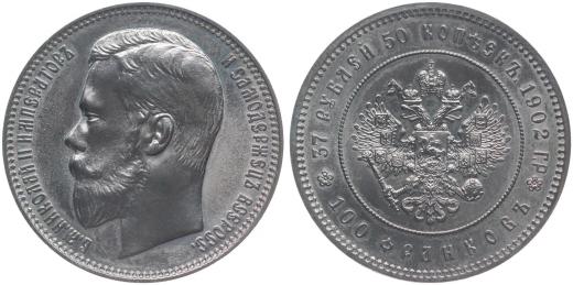37.5 Rubl (100 Frank) 1902 GR - niklový odražek, hladká hrana, KM.B65a, 14.194 g_R!
