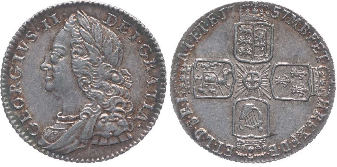 6 Pence 1757, Cr.7a, KM.582.2, Seaby.3711