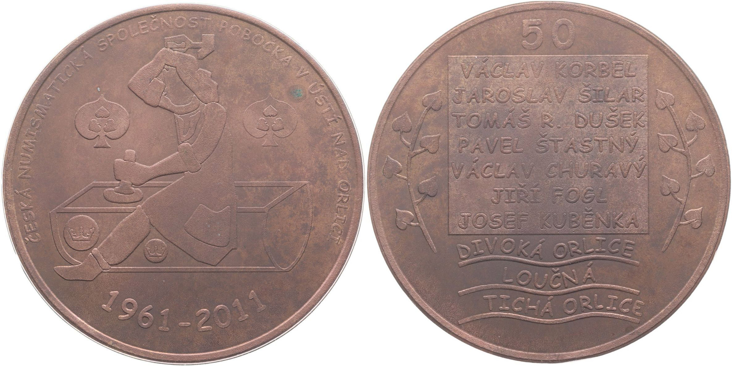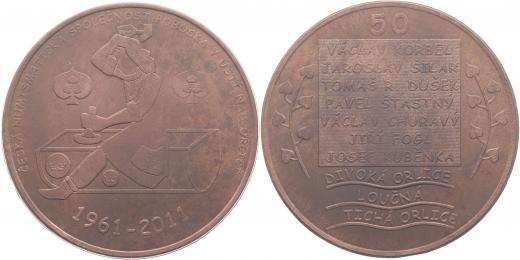 V.Mareš - medaile k 50.výročí pobočky 1961 - 2011 Sedící pregéř zleva, opis / ve čtverci jména předsedů pobočky Sign., Cu 50,5 mm, 90,58 g, náklad 3 ks, MF.A41/14c_RR!