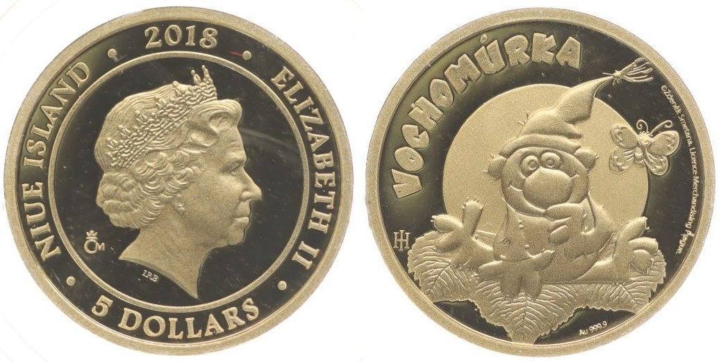 5 Dolar (1/10 Unce) 2018 Portrét královny Alžběty zprava, opis / Vochomůrka, opis ryz.999/1000, Au 16 mm, 3,13 g_orig.kapsle + etue + certifikát