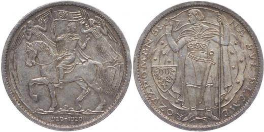 Větší medaile na milénium Sv.Václava, 1929 Sv.Václav na koni, andělé, letopočet / Sv.Václav s praporcem, znak, opis, Punc.987, Ag 40 mm, 30.0 g, Aur.M2d