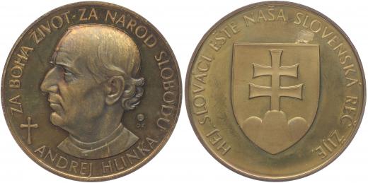 A.Hlinka - poprsí zleva, opis / státní znak, opis, b.l. Sign.DZ, Pozlac. Ag 900, 40 mm, 37,6 g, náklad 200 ks, čís.9