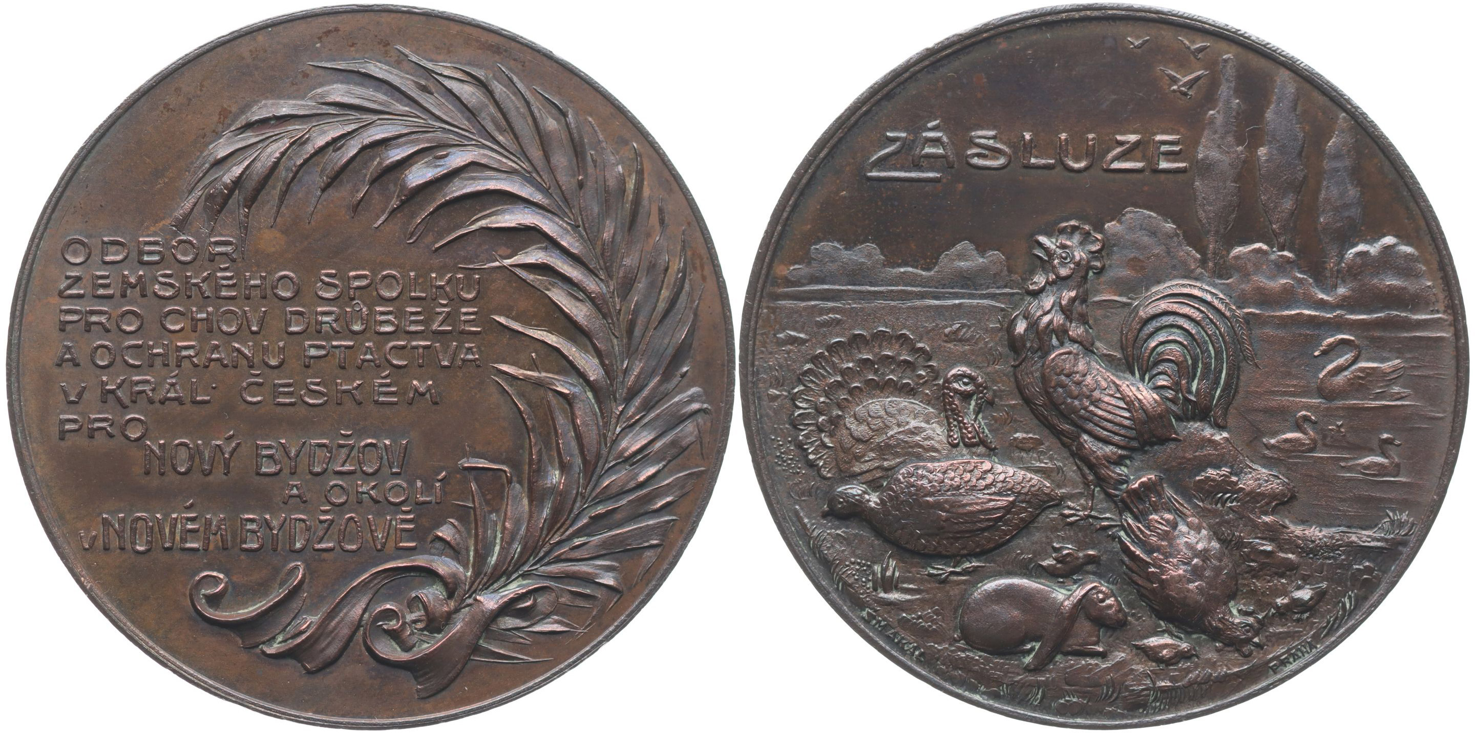 Šmakal - odbor zemského spolku pro chov drůbeže a ochranu ptactva v Král.českém / Zásluze, drůbež, b.l. Sign., Bronz 45 mm, 32 g