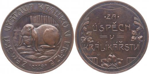 Šmakal - Zemská výstava králíků - Za úspěch v králíkářství, b.l. Králík zleva, opis / nápis a lipové snítky, Sign., Bronz 39 mm, 22 g