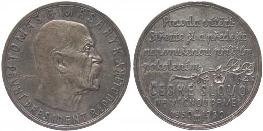O.Španiel - České Slovo k 80.narozeninám, 7.III.1930 Hlava zprava, opis / 7-řádkový nápis a lipová ratolest Sign., Punc., Ag 35 mm, 15,00 g, Fl.31, Nov.01.071_dr.hr. orig.etue