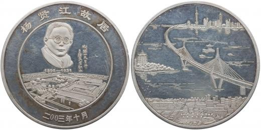 Medaile na stavbu mostu - říjen 2003, portrét nad městem, opis / most spojující dvě pevniny, Ag 65 mm, 74,39 g