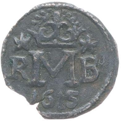 Matyáš II. - Malý (černý) peníz 1615, Kutná Hora, Šmilauer 12 mm, 0,37 g, Nech.26