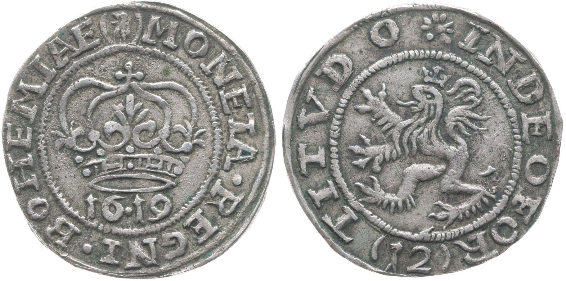 České stavy - 12 Krejcar 1619, Jáchymov - Lengefelder 29 mm, 5,67 g, Nech.28