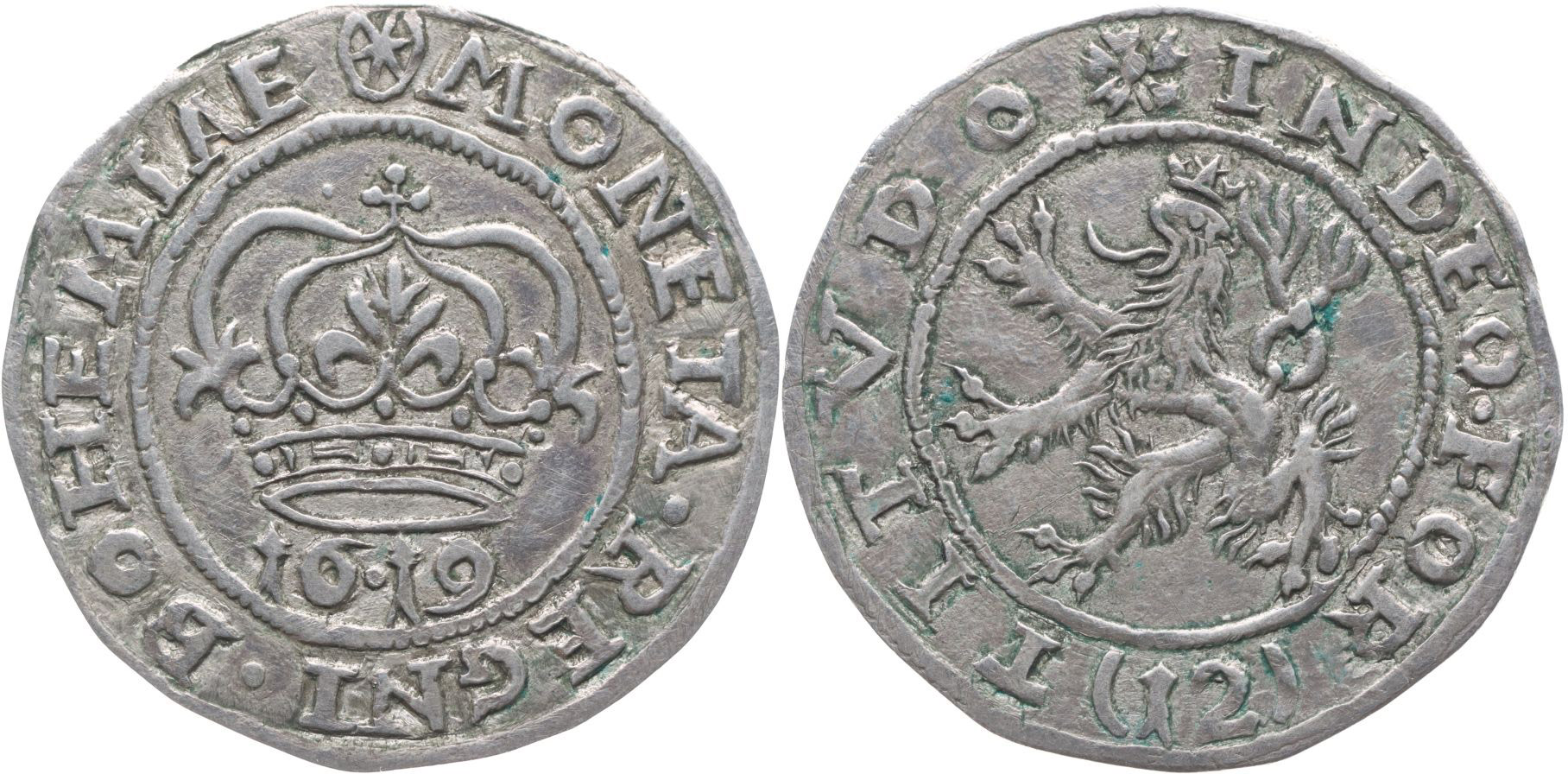 České stavy - 12 Krejcar 1619, Kutná Hora - Hölzl 29 mm, 3,81 g, jako Nech.28, ale jiná mincovna!